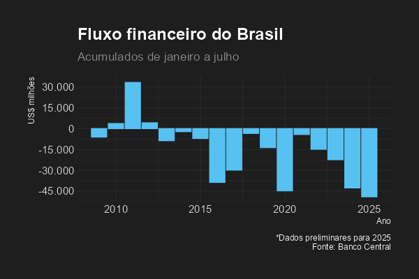 Na estimativa mais recente do BC, o saldo positivo de 2019 ficará em US$ 40,00 bilhões. Esta projeção foi atualizada no RTI de março.